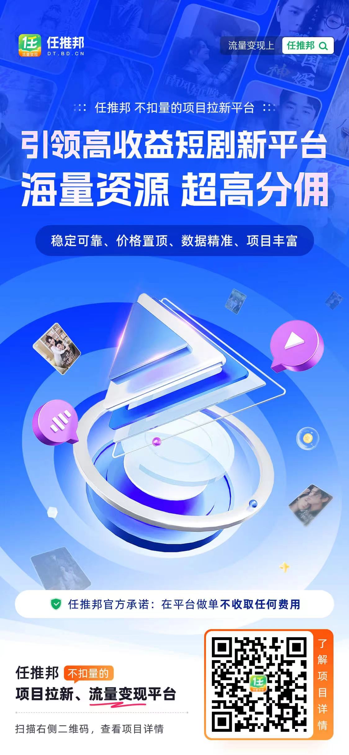 各类短剧小说推广,网盘拉新项目,APP推广注册业务,一个稳定靠谱不扣量的项目推广拉新,流量变现平台